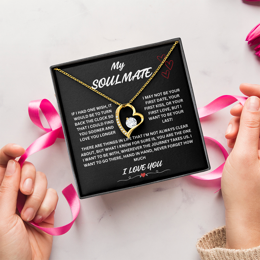 The dazzling Forever Love Necklace is sure to make her heart melt! This necklace features a stunning 6.5mm CZ crystal surrounded by a polished heart pendant embellished with smaller crystals to add extra sparkle and shine. Beautifully crafted with either a white gold or yellow gold finish, be sure to give her a classic gift she can enjoy everyday.